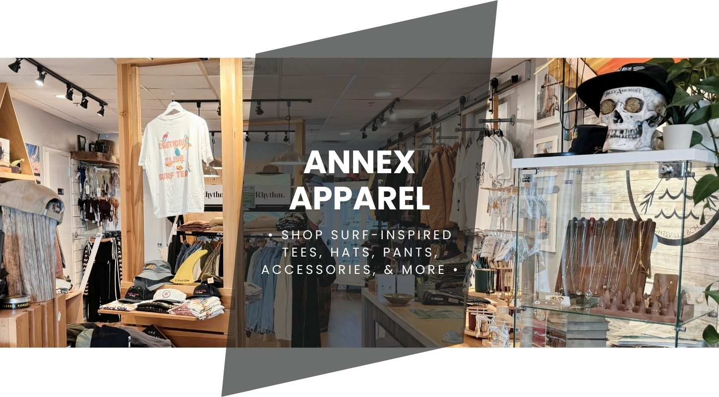 Keeping the stoke alive since ’78— Surf City Surf Shop has spent over four decades at the heart of Wrightsville Beach’s surf and skate scene. From beginners to seasoned pros, we’ve got the gear, boards, and advice to keep you ready for the water, the roads, and everything in between. Our friendly, knowledgeable staff is always here to answer questions, share tips, or just talk surf. Whether you’re picking out your first board, upgrading your gear, or looking for a cool tee from our shop, there’s a little something here for everyone. Stop by and see why we’re the go-to shop of Wrightsville Beach—or check out our merch online if you can’t make it in!