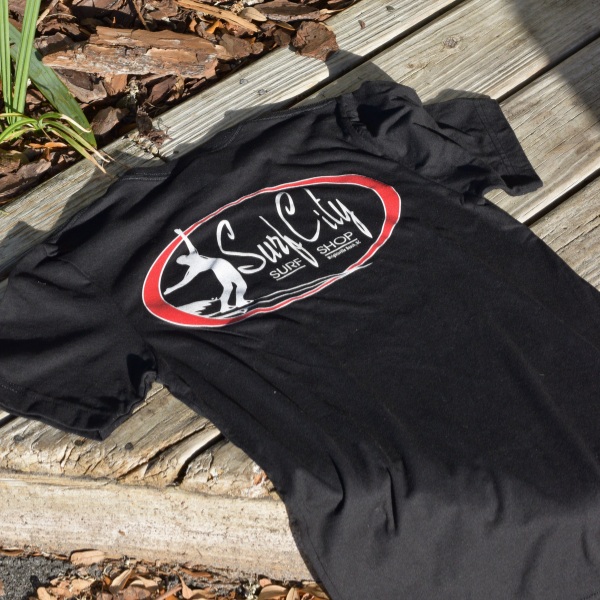 Surf City Oval Logo Tee in Black. Our Classic Oval logo on an ultra-soft tee. This t-shirt offers a relaxed fit that’s versatile and breathable.